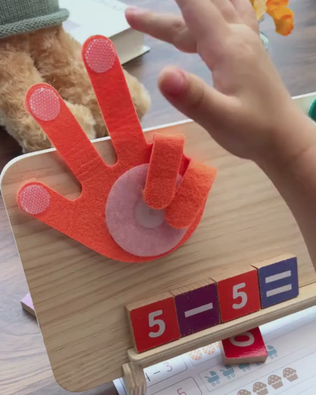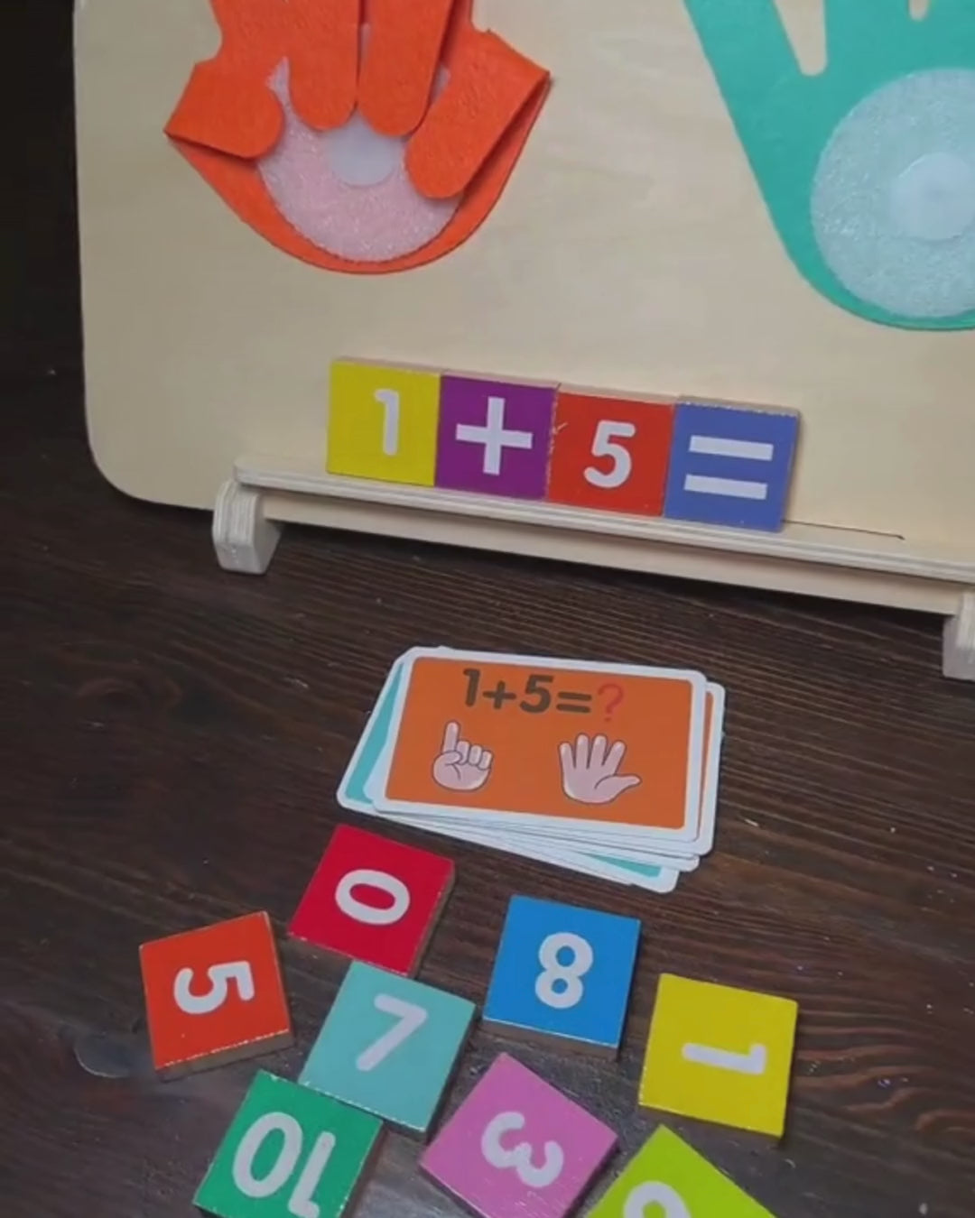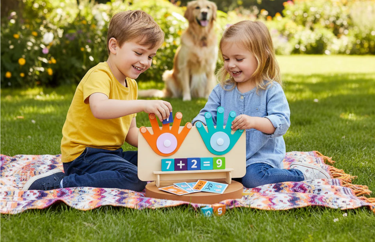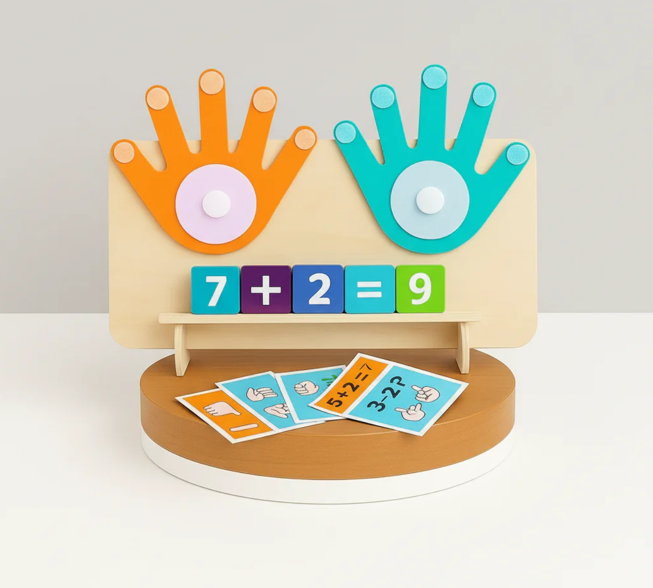 Ce jeu éducatif permet à votre enfant de comprendre les notions d’addition et de soustraction de façon concrète et visuelle. Grâce aux mains colorées et aux cartes illustrées, il apprend à voir et sentir les nombres, plutôt que de simplement les mémoriser.